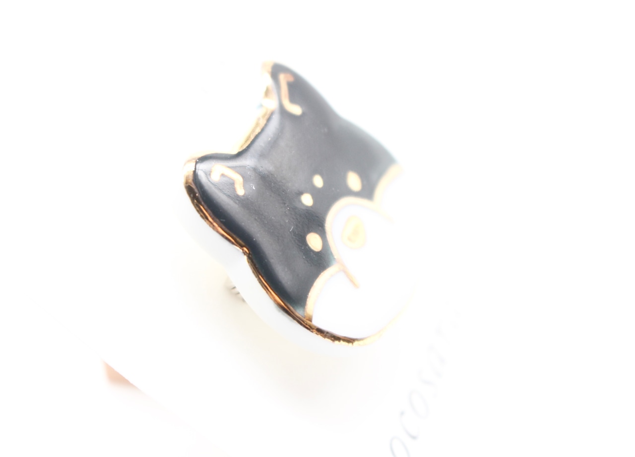 有田焼ブローチ 柴犬(ブラック×ゴールド)